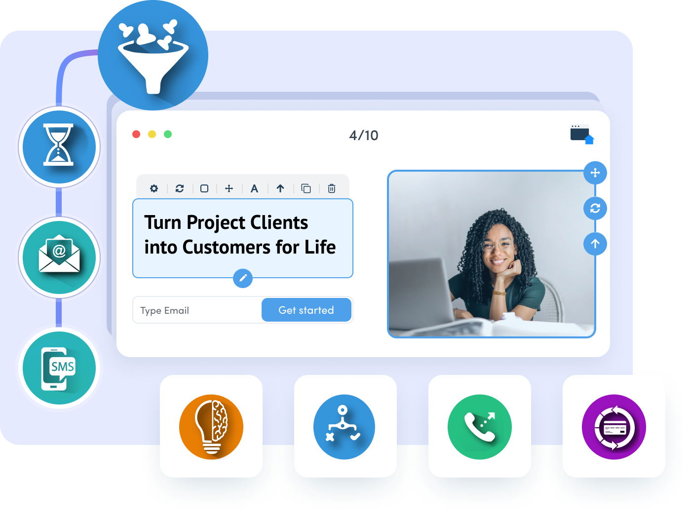 Your forms, funnels, email, SMS, incoming phone calls, pipelines, and more are all connected to our Flow Builder. Effortlessly drag & drop to create your own custom sequence of events. Work smarter not harder and automate your sales, marketing, processes, and even fulfillment.